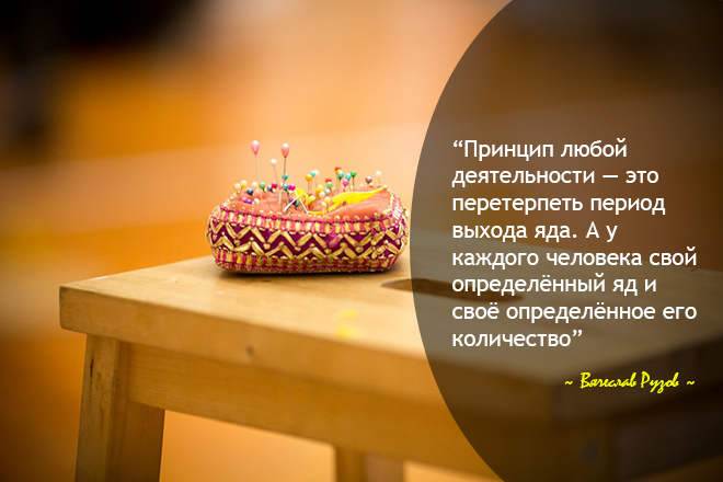 Во-вторых, помните: первым результатом сотрудничества является не нектар. Это открытие, которое останавливает человека, не обладающего знанием. А секрет именно в этом и состоит: до того, как появится нектар, должен выйти весь яд. Даже в физической деятельности надо три раза перепотеть, чтобы добиться желаемого. Поэтому принцип любой деятельности — это перетерпеть период выхода яда. А у каждого человека свой определённый яд и своё определённое его количество.